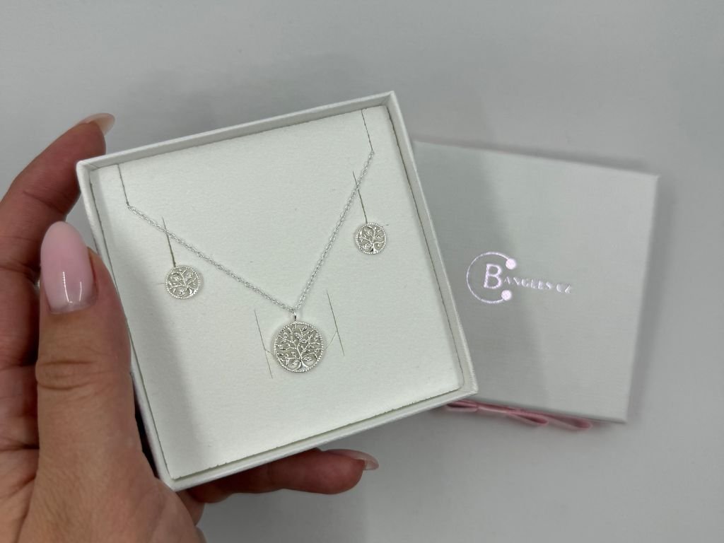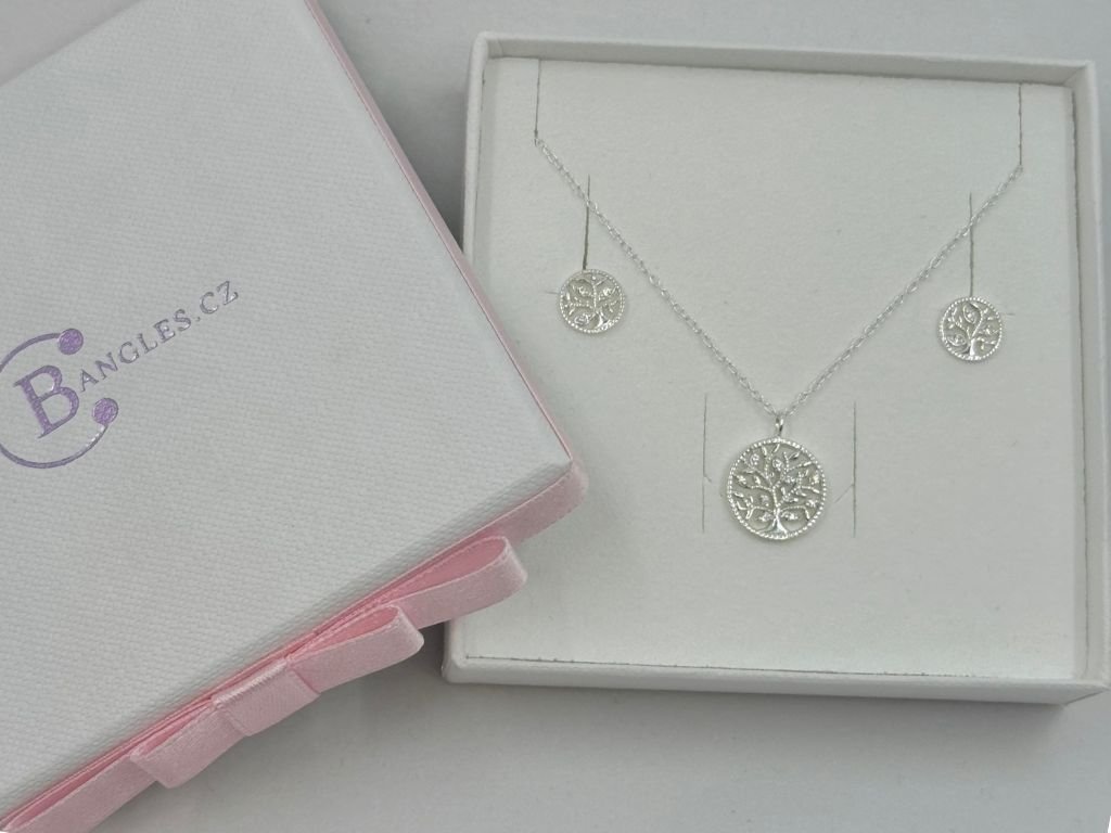 Řetízek i náušnice jsou vyrobeny ze šperkovního stříbra ryzosti 925.