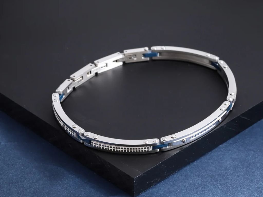 Vysoce leštěná chirurgická ocel zajišťuje dlouhotrvající stálost náramku.
