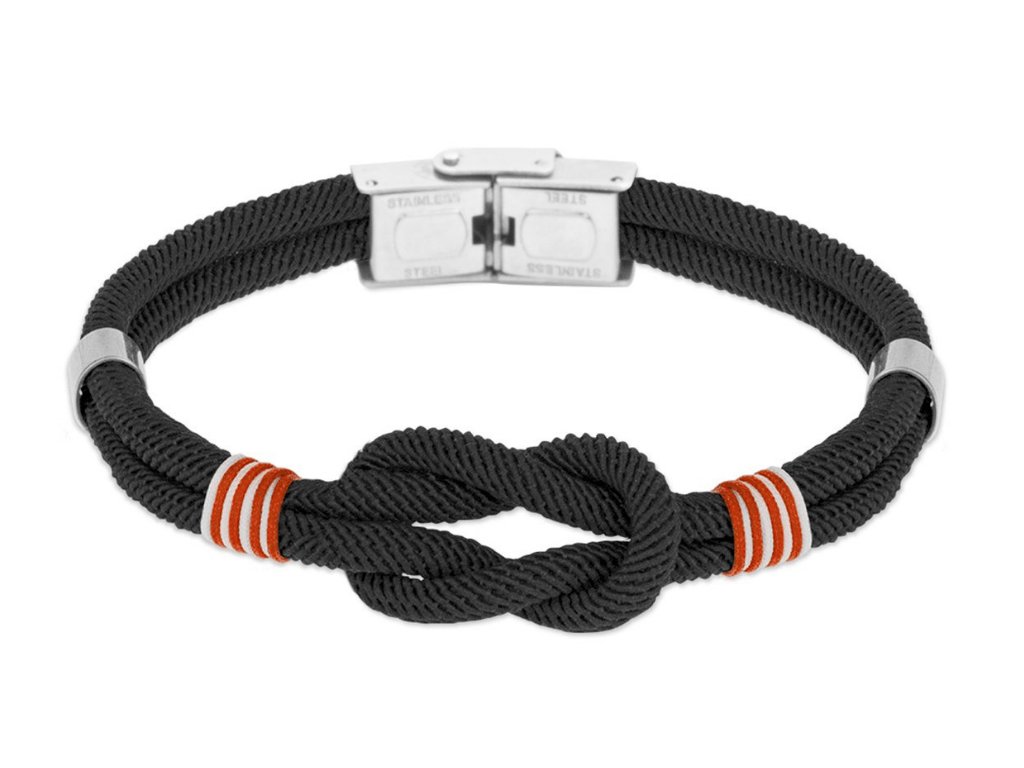 Stylový pánský náramek inspirovaný námořnickým stylem je vyroben z pevné nylonové šňůrky, dominantním prvkem náramku je námořnický uzel, který dodává šperku originální a mužný vzhled. Náramek je vybaven praktickým ocelovým zapínáním, které je bezpečné, pohodlné a snadno se používá.