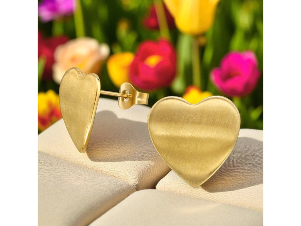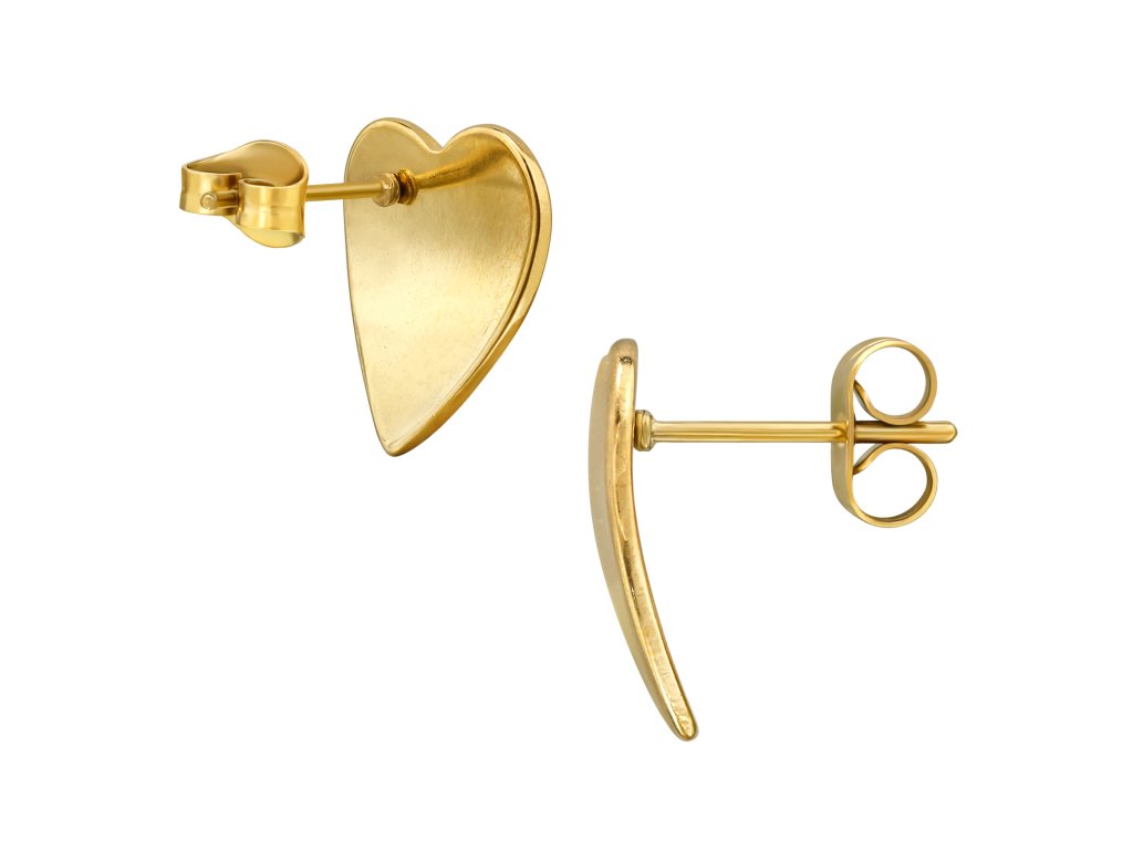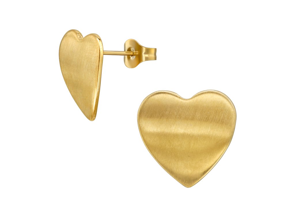 Minimalistické náušnice z chirurgické oceli plátované zlatém IP/PVD ve tvaru srdce působí jemně, a přesto výrazně.