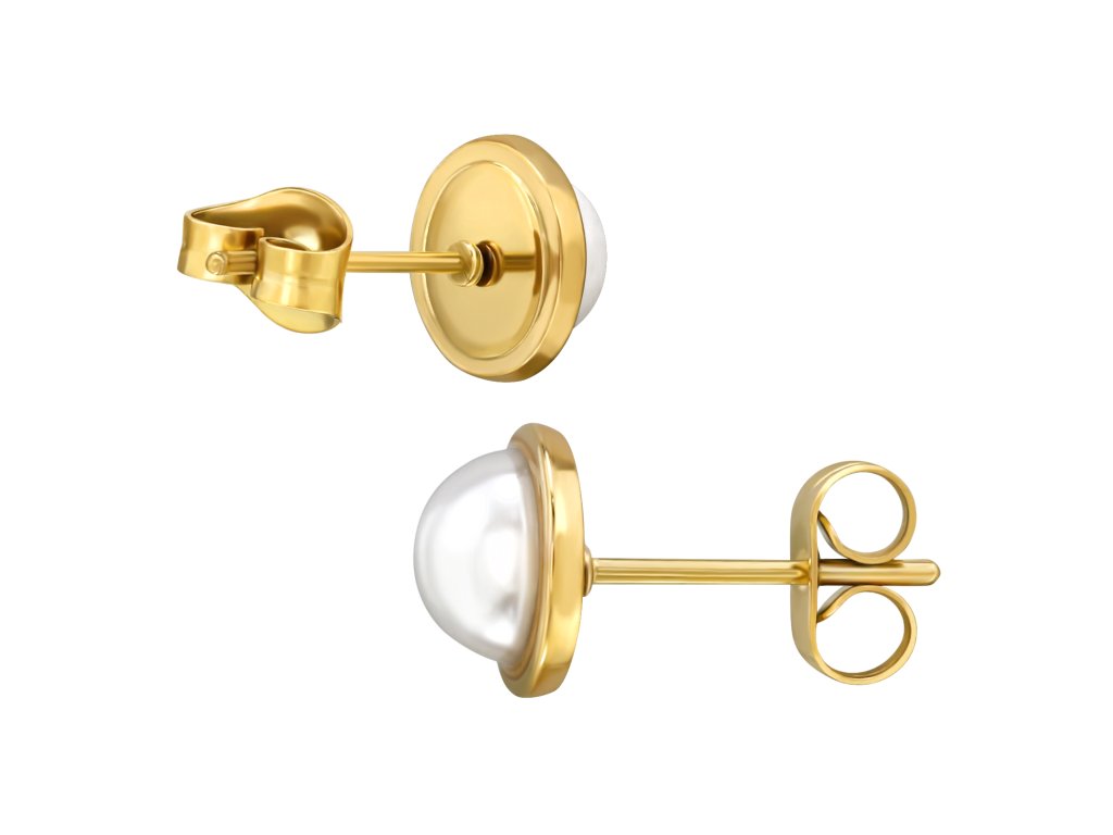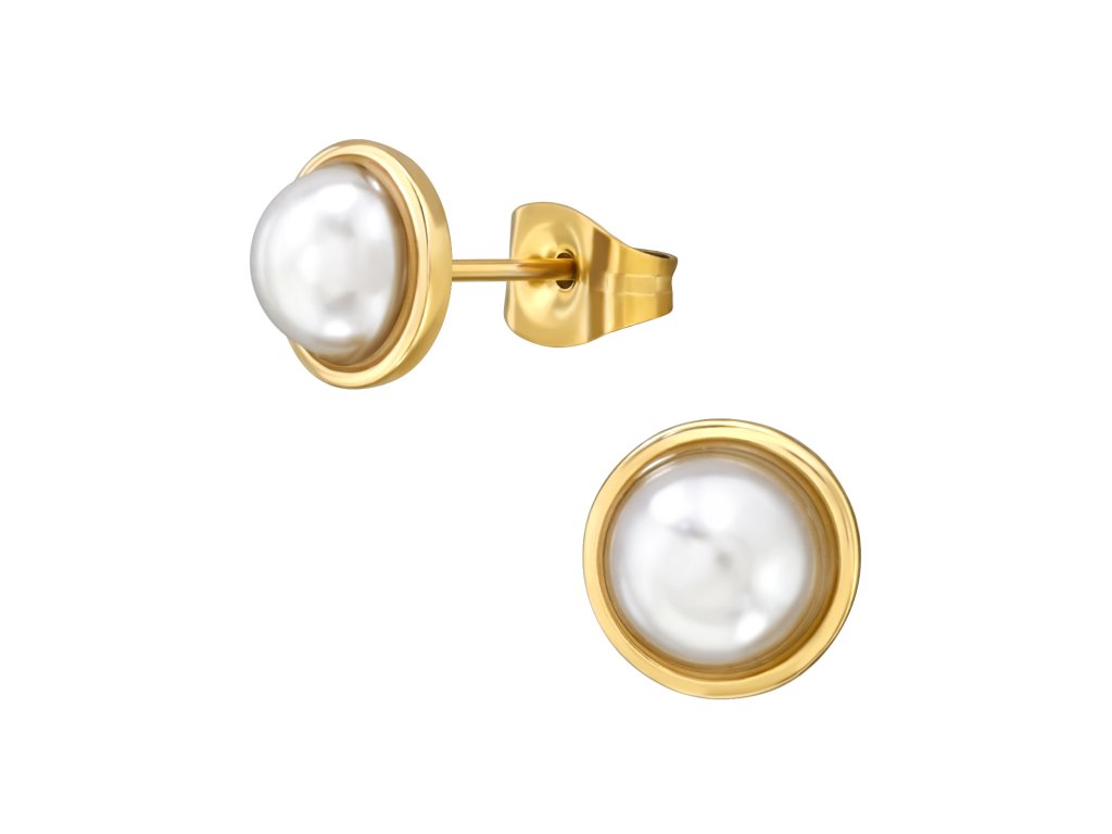 Minimalistické náušnice z chirurgické oceli ve zlatém provedení, vsazené perly působí jemně a přitom výrazně.