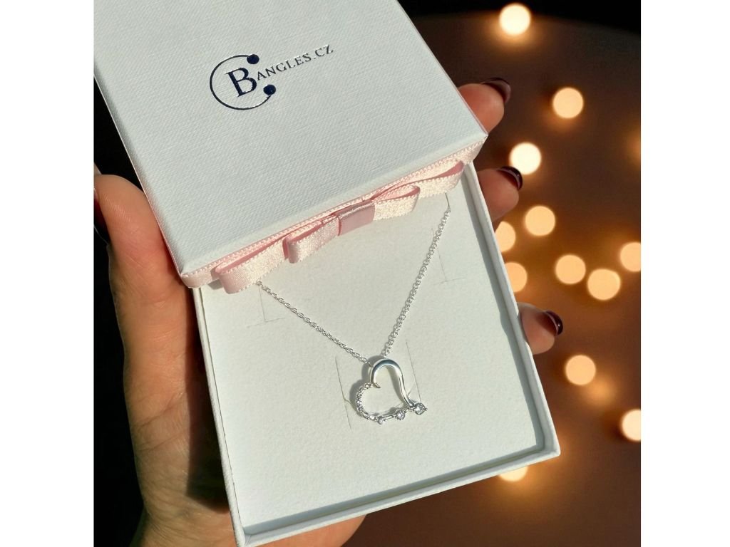 Romantický stříbrný řetízek se zamilovaným symbolem srdce.