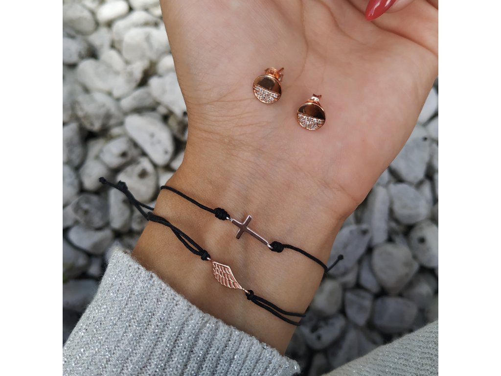 Šňůrkový náramek s prvkem křížku ze šperkovního stříbra 925.