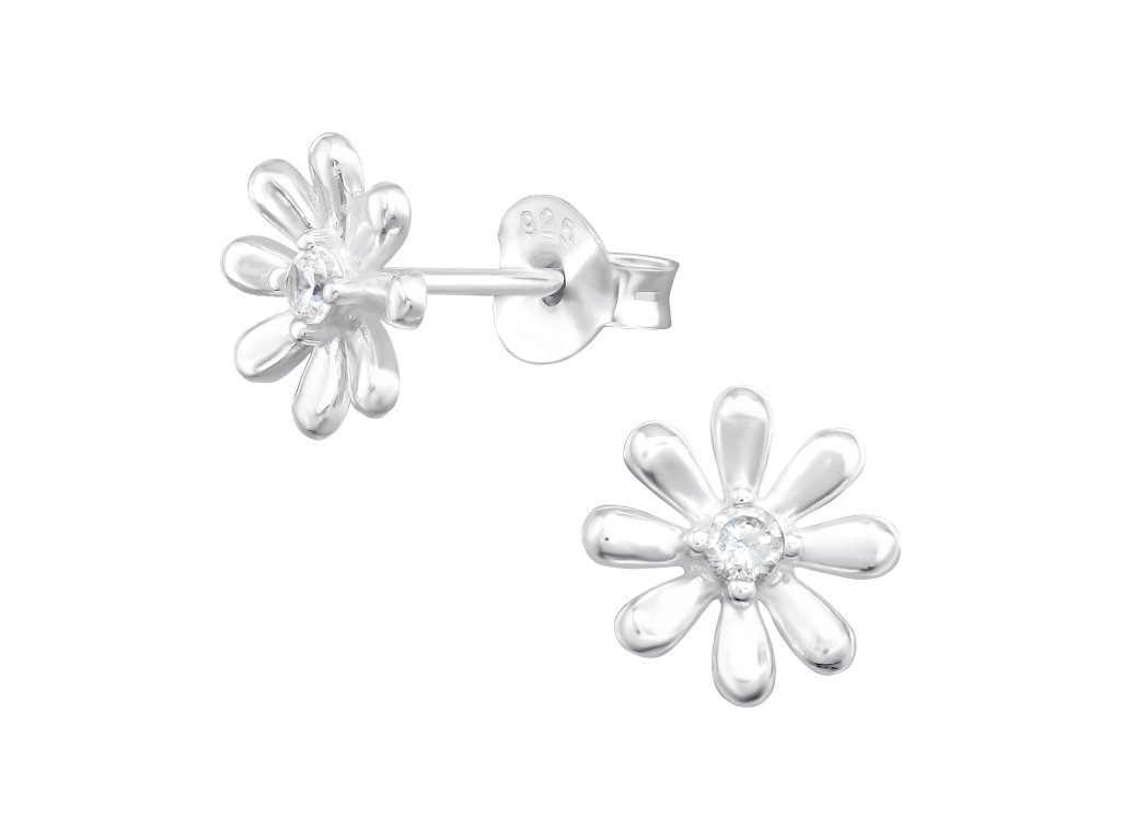Stříbrné puzetové náušnice se symbolem Sedmikrásky.
